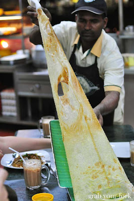 Anyway I just wanted to share a recent experience we had at Kayu Nasi Kandar the other night, as I was extremely curious about the 1m roti you wrote of (which I later inhaled more than half of it myself). Armed with colour printouts of your blog entries, my husband and I trekked to Petaling Jaya for a late dinner on January 3, and received a number of curious looks from the workers there. Not knowing what the Malaysian menu says, I simply pointed at the photos of mee goreng and the 1m roti on your blog to the waiters. The waiter was stunned to say the least, then slowly picked up my printouts and looked at them in awe. I explained to him I found their restaurant on the internet via your food blog. He gave us a shy smile, pointed at the guy who was holding up the 1m roti on your blog, and said to us "this is me".